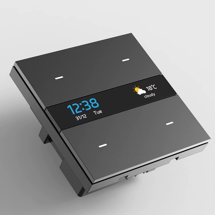 کلید چهار پل لمسی هوشمند TUYA مدل M8 Pro مشکی دارای نمایشگر با ارتباط ZigBee گرید A